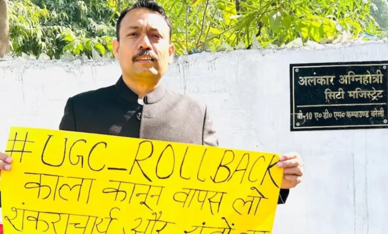 UGC मुख्यालय पर प्रदर्शन: निलंबित PCS अलंकार अग्निहोत्री का ‘सवर्ण अधिकार’ मोर्चा, भेदभाव के खिलाफ घेराव